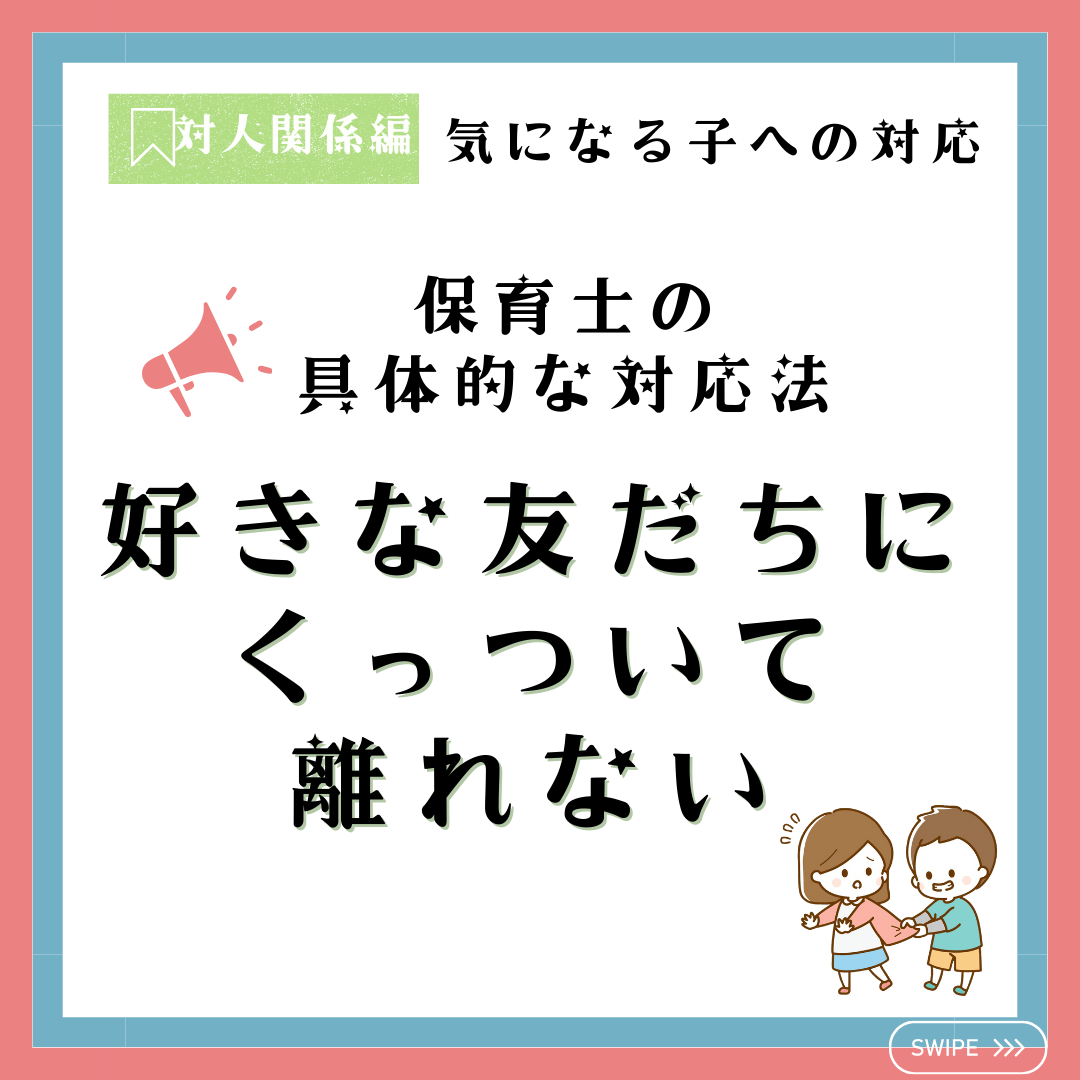 好きな友だちにくっついて離れない子どもへの対応は、保育士が助けとなる大切なポイントです。特定の友だちとだけ過ごすことで安心感を得ている一方、他の友だちと関わる機会を逃すこともあります。